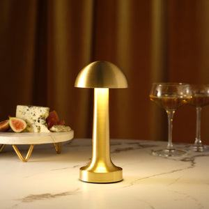 Tablekraft Ambience Thea cordless table lamp offers a sleek, slim design with a metal body and an enclosed dome diffuser for glare-free direct downlighting. Available in Oxide Black, Brushed Brass, and Brushed Copper, these elegant lamps enhance any space with their style and multifunctionality. The lamp is also equipped with dimmer functions and three-level adjustments and is USB rechargeable, making it a versatile and convenient lighting choice.