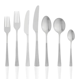 Make a statement with Aswan from Tablekraft. Distinguishable by textured striped, oxidized handles with contrasting smooth, satin heads, Aswan is made from durable 18/10 stainless steel.