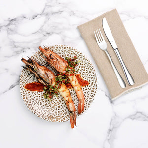 Made of clay that's malleable and great for forming detailed shapes. Created in a two firing process where it becomes vitrified during the second firing, making porcelain an extremely durable dinnerware option that is dishwasher, microwave, and oven safe.