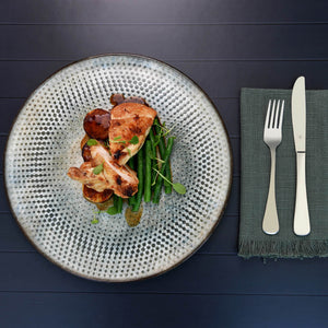 Creating a distinctive backdrop, Bonna Lenta Olive adds a rustic elegance. All styles of food will complement the olive colour tones making this range the perfect choice.