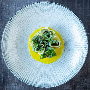 Made of clay that's malleable and great for forming detailed shapes. Created in a two firing process where it becomes vitrified during the second firing, making porcelain an extremely durable dinnerware option that is dishwasher, microwave, and oven safe.
