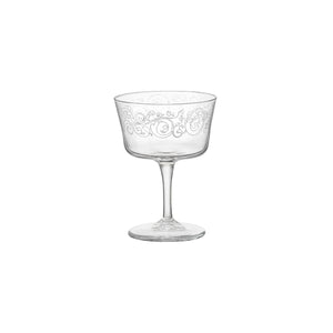 Delicate and vintage style, the graceful detail on Bormioli Rocco's Liberty adds elegance and glamour. The impressively refined stemware gives a touch of originality and beauty to the table.