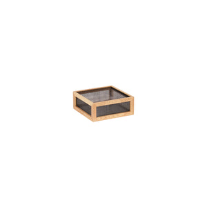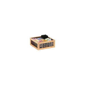 The contemporary Cal-Mil Camden collection showcases a skilfully crafted combination of black perforated metal and light oak accents, blending modern and industrial elements in an eye-catching design. The contrast between the materials adds a striking touch to any buffet service.