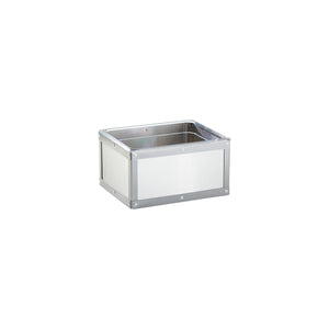 Contemporary and modern, Cal-Mil Urban collection features vivid stainless steel rivets. This eye-catching range of white metal and clear acrylic mixes with other materials seamlessly and enhances any buffet presentation.