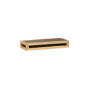 The contemporary Cal-Mil Camden collection showcases a skilfully crafted combination of black perforated metal and light oak accents, blending modern and industrial elements in an eye-catching design. The contrast between the materials adds a striking touch to any buffet service.