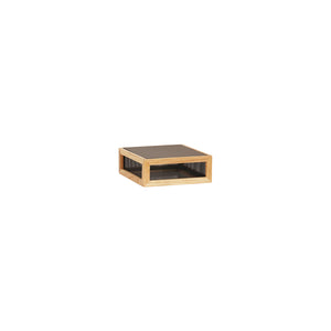The contemporary Cal-Mil Camden collection showcases a skilfully crafted combination of black perforated metal and light oak accents, blending modern and industrial elements in an eye-catching design. The contrast between the materials adds a striking touch to any buffet service.
