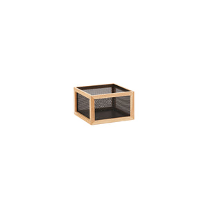 The contemporary Cal-Mil Camden collection showcases a skilfully crafted combination of black perforated metal and light oak accents, blending modern and industrial elements in an eye-catching design. The contrast between the materials adds a striking touch to any buffet service.