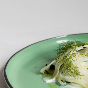 Add a hint of colour to your table with Caractere Mint. Ideal for mixing with other ranges, this elegant colour delivers a statement and appeal. The stunning charcoal rim adds contrast, while the glossy finish showcases beautifully plated dishes.