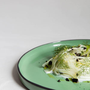 Add a hint of colour to your table with Caractere Mint. Ideal for mixing with other ranges, this elegant colour delivers a statement and appeal. The stunning charcoal rim adds contrast, while the glossy finish showcases beautifully plated dishes.