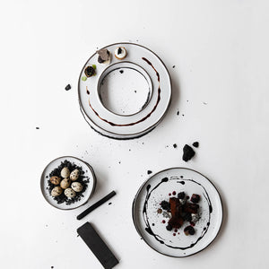Classic and sleek, the brilliant clean base of Caractere White Cumulus adds contemporary style. The stunning charcoal rim adds contrast, while the glossy finish showcases beautifully plated dishes.