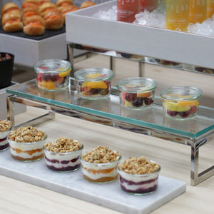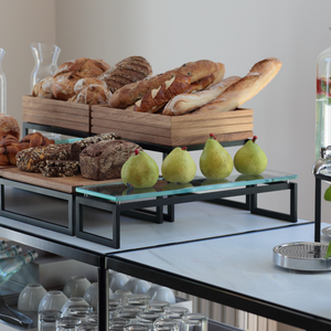 Craster Flow is a versatile range of stackable trays and buffet risers crafted around gastronorm sizing. Available in natural oak and walnut, black, white and marble, this collection is interchangeable and stackable. Offering heating and cooling technologies, this impressive range adds depth with angles and levels.