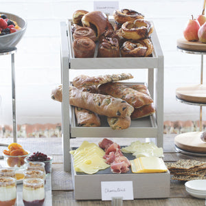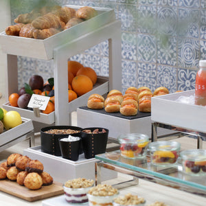 Craster Flow is a versatile range of stackable trays and buffet risers crafted around gastronorm sizing. Available in natural oak and walnut, black, white and marble, this collection is interchangeable and stackable. Offering heating and cooling technologies, this impressive range adds depth with angles and levels.