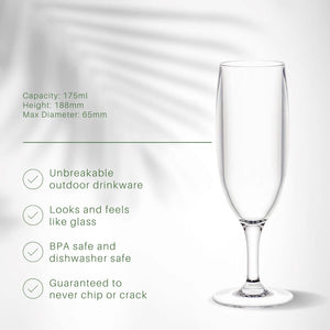 The Essentials Champagne Flute Polycarbonate 175ml is engineered for sparkling wine service in high-traffic environments. Its durable polycarbonate construction ensures longevity while retaining a traditional flute profile for consistent presentation.