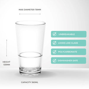 The Essentials Highball Beer W&M Certified, Nucleated 360ml supports consistent beer presentation and portion control. Featuring a nucleated base and robust polycarbonate build, it is suitable for high-turnover hospitality operations requiring certified drinkware solutions.