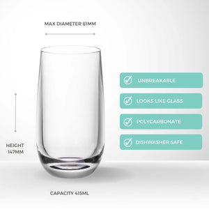 The Essentials Highball Polycarbonate 415ml is a versatile option for cocktail, soft drink, and beverage service in hospitality environments. Its durable polycarbonate construction ensures longevity and resistance to breakage, making it suitable for high-traffic venues. The balanced capacity supports efficient portioning and presentation.