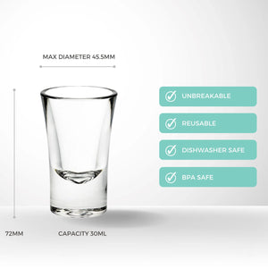 The Shot Polycarbonate 30ml is engineered for precise, controlled spirit service in professional hospitality settings. Its compact size supports portion accuracy while the polycarbonate construction ensures excellent resistance to impact and frequent washing. Designed for high-turnover environments such as bars, clubs, and function venues, this shot glass provides dependable performance, clarity, and longevity under continuous commercial use.