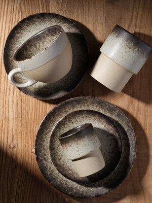 Made of clay that's malleable and great for forming detailed shapes. Created in a two firing process where it becomes vitrified during the second firing, making porcelain an extremely durable dinnerware option that is dishwasher, microwave, and oven safe.