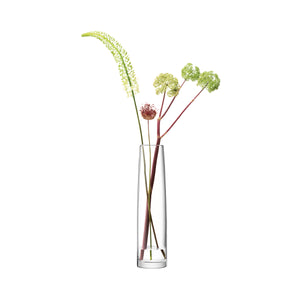 A very tall mouth-blown vase with thick, sloping walls. Ideal for floor standing displays of tall branches. Available in clear and cased-coloured glass.