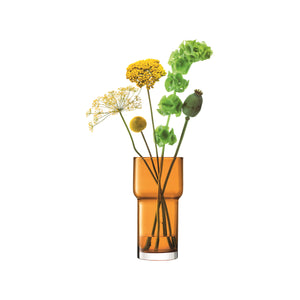 A mouth-blown glass vase with thick, stepped walls. Designed for mixed bouquets or a few large flower heads. Available in clear and cased-coloured glass.
