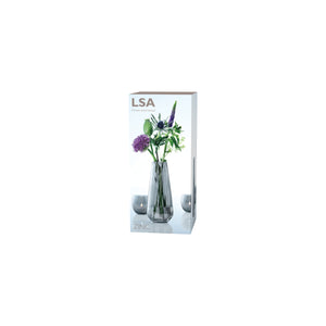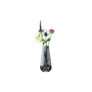 A small mouth-blown glass vase with a teardrop shape and fluted texture. Hand painted with lustre inspired by the colour of zinc.