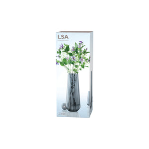 A mouth-blown glass vase with a tall teardrop shape and fluted texture. Hand painted with lustre inspired by the colour of zinc.