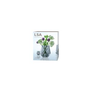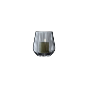 A mouth-blown glass vase/lantern with a wide teardrop shape and fluted texture. Hand painted with lustre inspired by the colour of zinc.