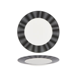 Sophisticated and luxurious, Nikko Silk Black is crafted on a pristine white bone china base. The sleek wide black decoration has a beautiful silk-like texture and soft wave appearance.