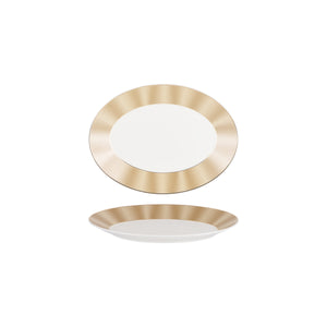 Sophisticated and luxurious, Nikko Silk Champagne is crafted on a pristine white bone china base. The elegant wide champagne coloured decoration has a beautiful silk-like texture and soft wave appearance.