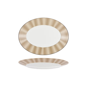 Sophisticated and luxurious, Nikko Silk Champagne is crafted on a pristine white bone china base. The elegant wide champagne coloured decoration has a beautiful silk-like texture and soft wave appearance.