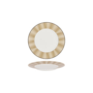 Sophisticated and luxurious, Nikko Silk Champagne is crafted on a pristine white bone china base. The elegant wide champagne coloured decoration has a beautiful silk-like texture and soft wave appearance.
