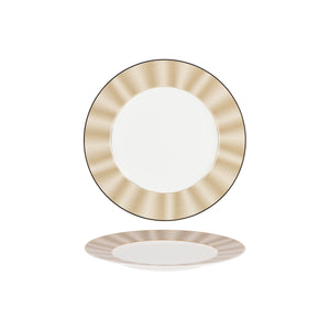 Sophisticated and luxurious, Nikko Silk Champagne is crafted on a pristine white bone china base. The elegant wide champagne coloured decoration has a beautiful silk-like texture and soft wave appearance.