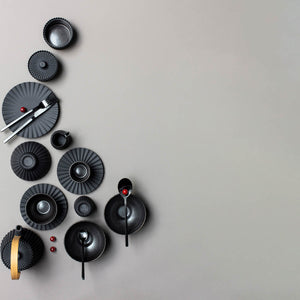 Crafted from black culinary porcelain, black vitrified porcelain has is fired at high temperatures creating dinnerware that is durable, sturdy and resistant to stains, chips and scratches. In some pieces, the extraordinary black porcelain becomes a feature for a unique and impressive appearance.
