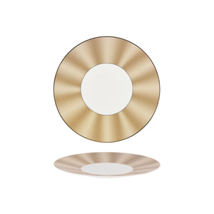 Sophisticated and luxurious, Nikko Silk Champagne is crafted on a pristine white bone china base. The elegant wide champagne coloured decoration has a beautiful silk-like texture and soft wave appearance.