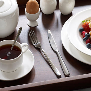 Long lines and elegant curves hallmark the popular Tablekraft Aero Dawn. Crafted from high polished 18/10 stainless steel with a generous weight, Aero Dawn adds contemporary refinement to any setting.