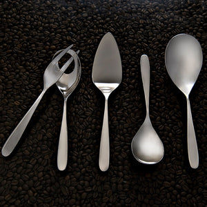 Beautifully crafted, Alaska combines elongated teardrop hollow handles with 18/10 stainless steel in a high mirror finish, providing a contemporary set of buffet serving utensils.