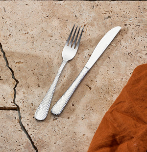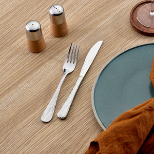 Crafted from premium 18/0 stainless steel, the Tablekraft Oscar range features a soft hammered texture in a mirror finish to the handles, a unique cutlery pattern that makes a bold statement.