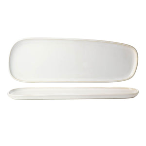 Introducing Tablekraft's presentation collection, Urban Serve. This stunning range features warm white hues, elegantly banded with subtle neutrals. The collection boasts footed stands, irregular platters, walled plates and innovative sauce solutions - perfect for impressive event buffets, bustling bakeries, chic cafes and beyond.
