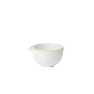 Each piece is hand-dipped into the glaze from top to bottom, leaving a single band or natural porcelain around the rim and base of each piece, with unique variations forming individual character.