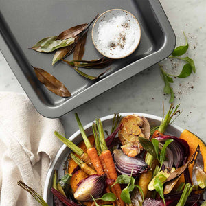 Whether you're a beginner or well-seasoned expert, begins with the right bakeware. The non-stick finish cleans up quickly and easily in hot soapy water. Rinse and wipe dry. Never use abrasives as this may harm your pan.