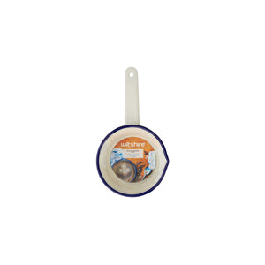 This cute milk pan will bring back memories of your grandmother, when she used to warm up milk for your cocoa when you were little. Ice white with a distinctive blue rim, Wiltshire enamelware is instantly recognizable as a design classic. But as well as timeless elegance, Wiltshire Enamelware has enduring strength thanks to it's 3 layers of porcelain, which is fused onto heavy-gauge steel, giving it durability, smoothness and chemical resistance. If you drop it, it may chip but it won't break and it can't burn.