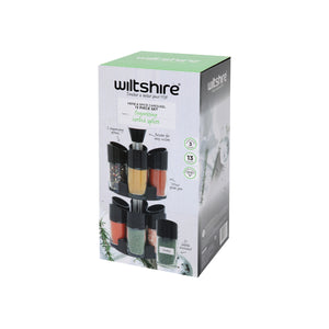 Wiltshire Herb & Spice Carousel Jar Set makes organising your spices & herbs easy. With 12 refillable glass jars that are a generous 100ml in size, and a rotating carousel for easy access. The 20 labels have 15 marked with your favourite spice names & 5 blank for you to customise. The jar lids offer 3 sizes - small holes, medium holes & a scoop hole - to make measuring and dispensing easy!