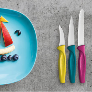 Wusthof Create combines razor-shape functionality and exceptional reliability. This versatile collection of knives features non-slip, high-quality synthetic handles and stainless steel razor-sharp blades.